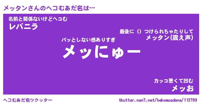 | ファンタジー風あだ名 | 『メッフェル』『エターナルメッタンー』 |