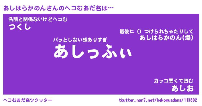 | 意味不明あだ名 | 『ペロリンあしはらかのん』 |