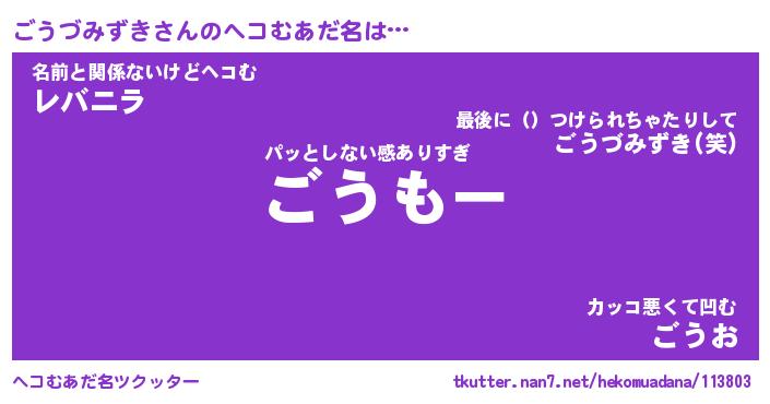 | ヒーロー風カッコイイあだ名 | 『スーパーゴウヅミズキ』『幻影騎士ゴウ』 |