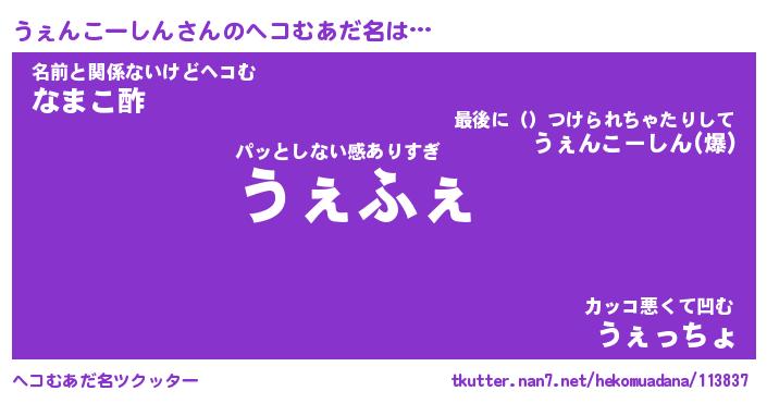 | 2回繰り返すあだ名 | 『うぇうぇ』『ううぇぇ』『うずうず』 |