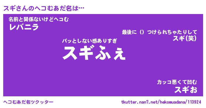 | 2回繰り返すあだ名 | 『スギスギ』『ススギギ』『ぐんぐん』 |