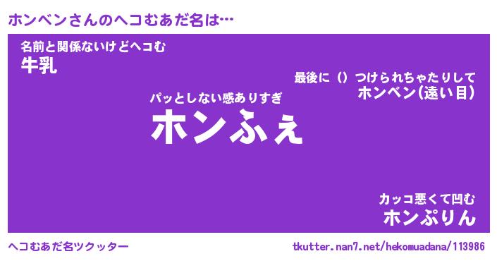 | 意味不明あだ名 | 『ペロリンホンベン』『永久保存ホンベン』 |