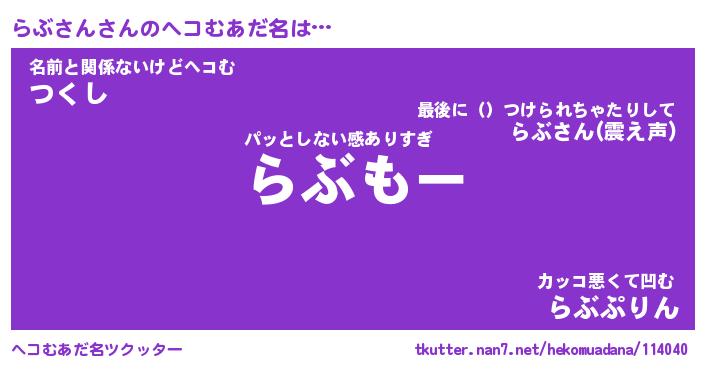 | 意味不明あだ名 | 『ペロリンらぶさん』『永久保存らぶさん』 |