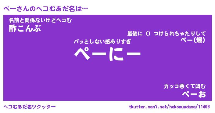 | 2回繰り返すあだ名 | 『ペーペー』『ペペーー』『ぬめぬめ』 |