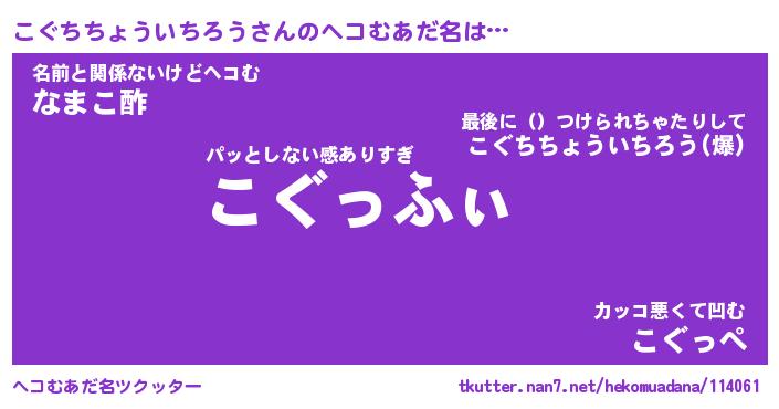 | 胡散臭い通販商品みたいなあだ名 | 『必ず成功する霊験あらたかなお札…その名も「こぐちちょういちろう」』 |