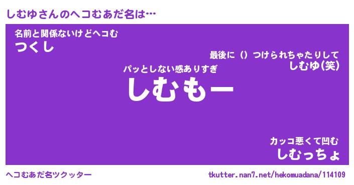 | 意味不明あだ名 | 『ペロリンしむゆ』『しむゆフォーエバー』 |