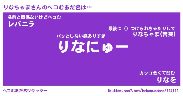 | 2回繰り返すあだ名 | 『りなりな』『りりなな』『のろのろ』 |