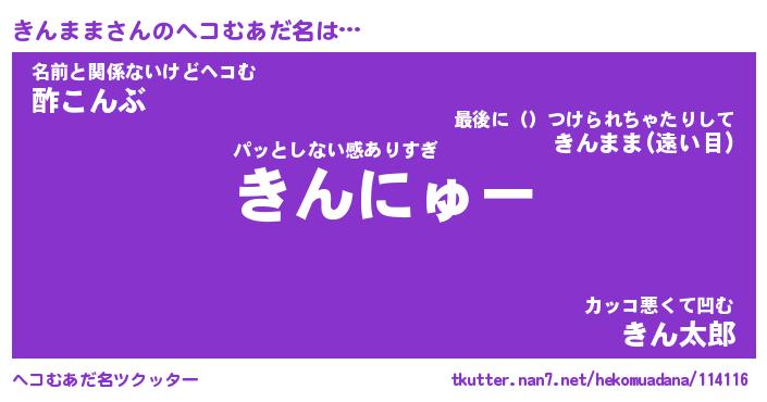 | 意味不明あだ名 | 『ペロリンきんまま』『永久保存きんまま』 |