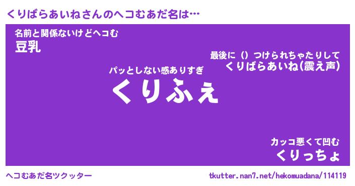 | ヒーロー風カッコイイあだ名 | 『スーパークリバラアイネ』 |