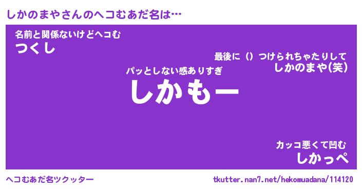 | ファンタジー風あだ名 | 『シカフェル』『エターナルシカノマヤー』 |