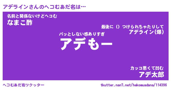 | ファンタジー風あだ名 | 『アデフェル』『エターナルアデラインー』 |