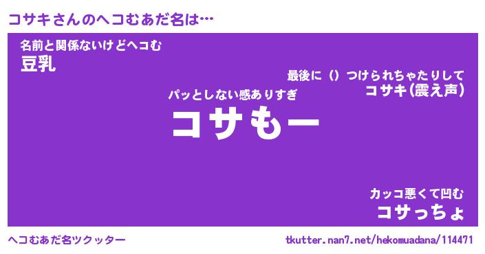 | ポケモン風あだ名 | 『コサチュウ』『コサキダネ』 |