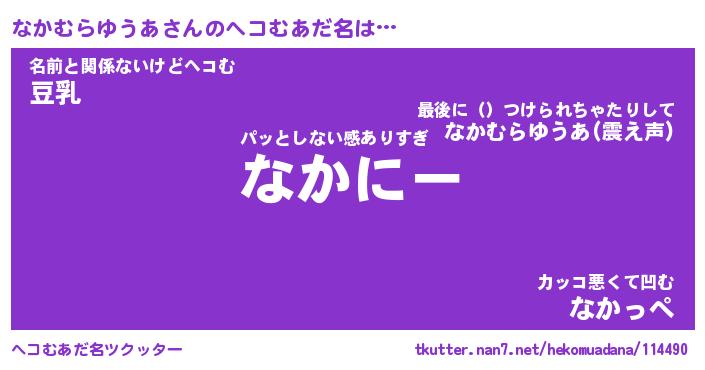 | 男性向けラノベタイトル風あだ名 | 『なかむらゆうあの憂鬱』 |