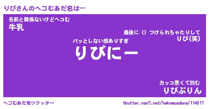 | ポケモン風あだ名 | 『リビチュウ』『リビダネ』『ヒリビ』 |