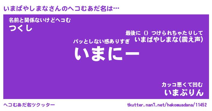 | 意味不明あだ名 | 『ペロリンいまばやしまな』 |