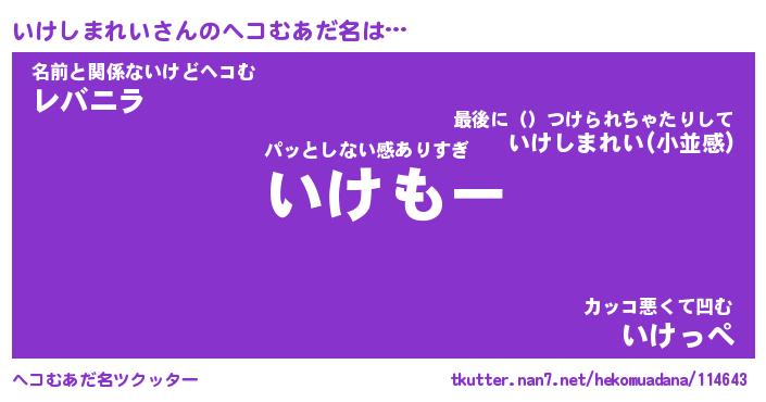 | 欧米人風あだ名 | 『マイケルいけしまれい』 |