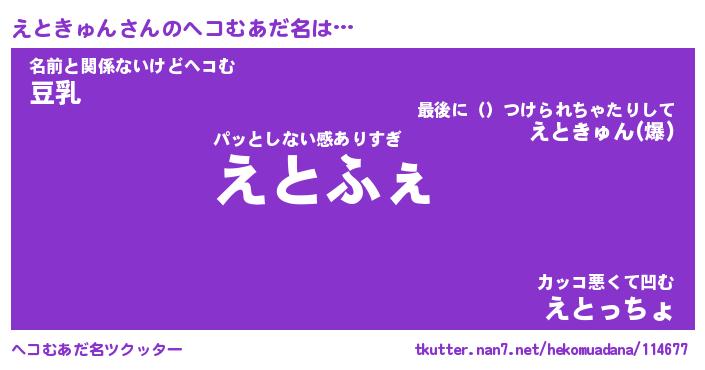 | ファンタジー風あだ名 | 『エトフェル』『エターナルエトキュンー』 |