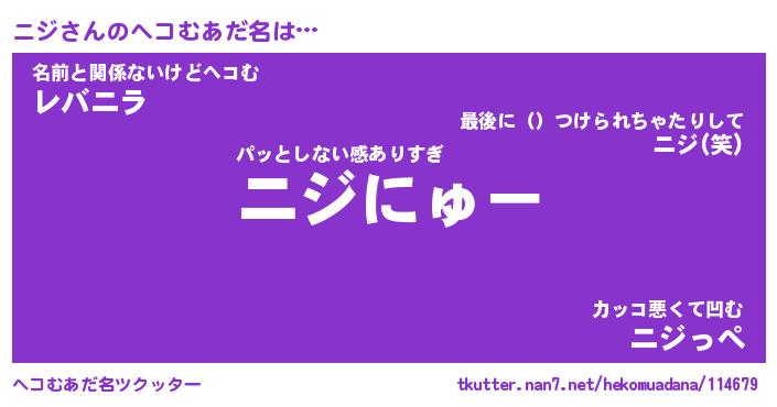 | ファンタジー風あだ名 | 『ニジフェル』『エターナルニジー』 |