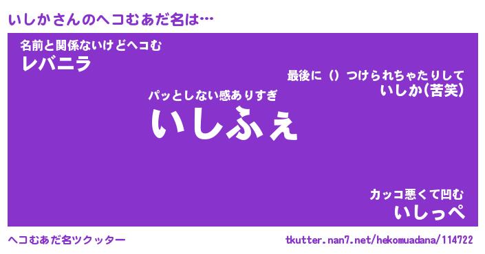 | ヒーロー風カッコイイあだ名 | 『スーパーイシカ』『ウルトラいしかマン』 |