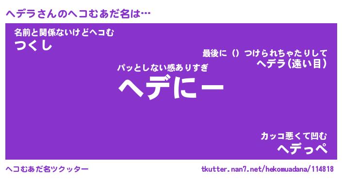 | ピコ太郎風あだ名 | 『ヘコ太郎』『ピヘ十郎』『ヘデ四郎』 |
