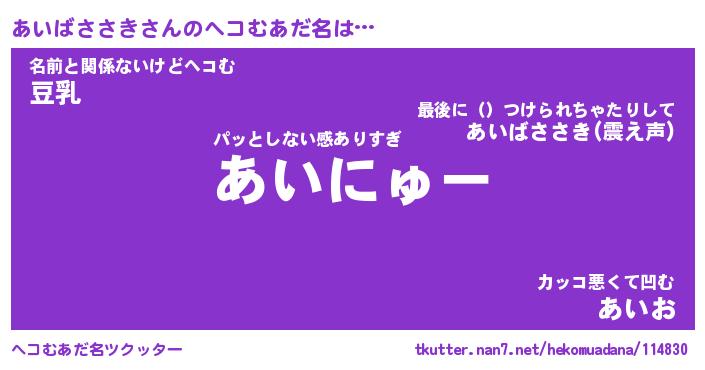 | ポケモン風あだ名 | 『アイチュウ』『アイバダネ』 |