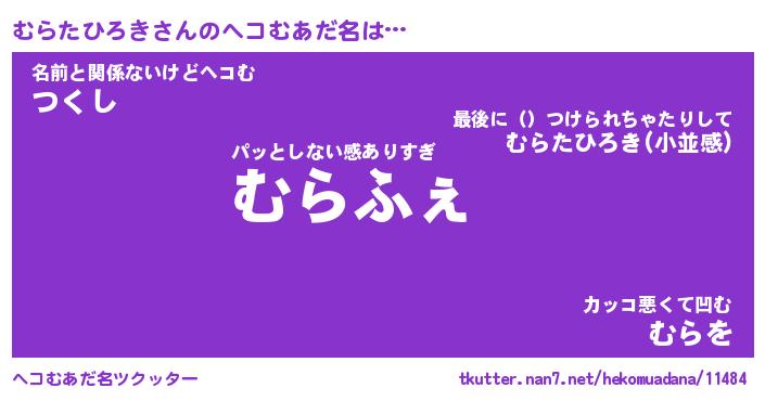 | ヒーロー風カッコイイあだ名 | 『スーパームラタヒロキ』『炎刃騎士ムラ』 |