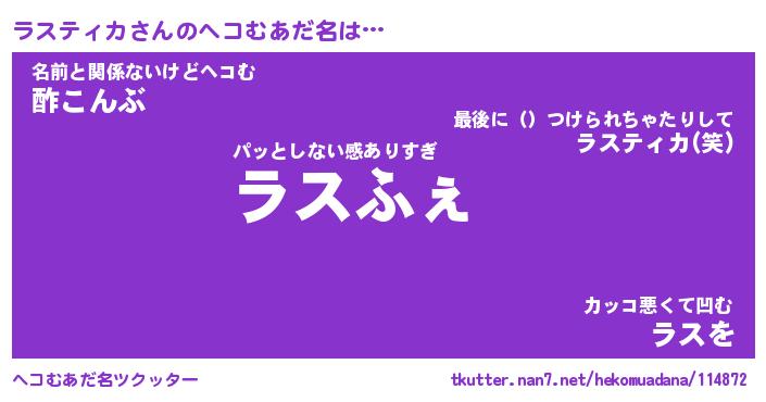| ファンタジー風あだ名 | 『ラスフェル』『エターナルラスティカー』 |