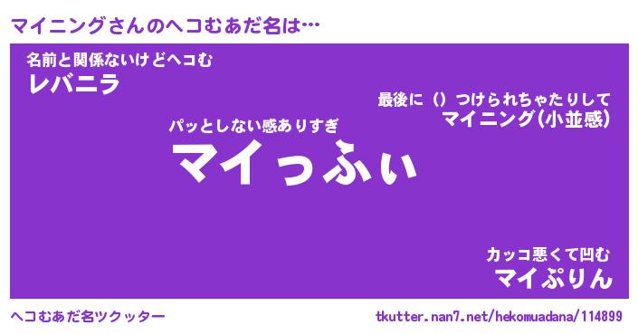 ファンタジー風あだ名 | 『マイフェル』『エターナルマイニングー』 |