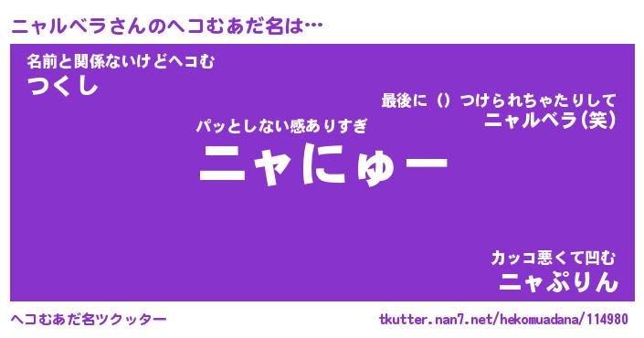 | 2回繰り返すあだ名 | 『ニャニャ』『ニニャャ』『ぬめぬめ』 |