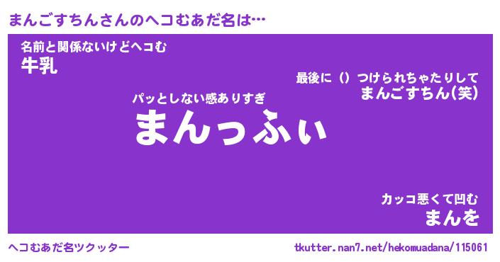 | ポケモン風あだ名 | 『マンチュウ』『マンゴダネ』 |