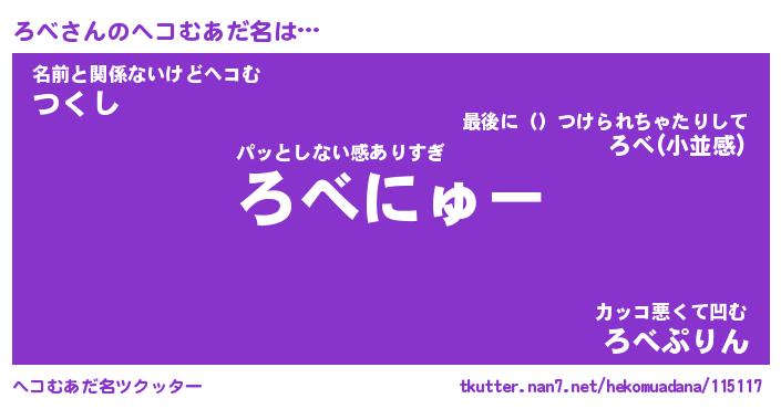 | 意味不明あだ名 | 『ペロリンろべ』『ろべフォーエバー』 |