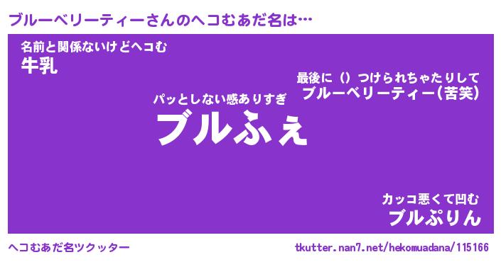 | 恥ずかしいあだ名 | 『プリティーブルーベリーティー』 |