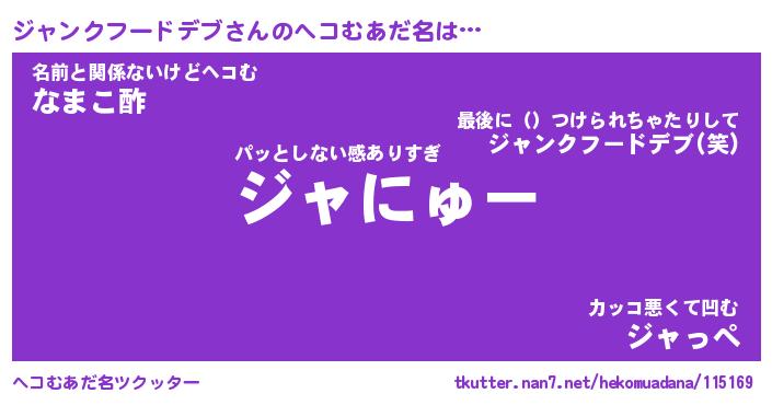 | 男性向けラノベタイトル風あだ名 | 『ジャンクフードデブの憂鬱』 |