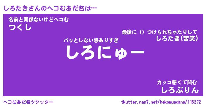 | 意味不明あだ名 | 『ペロリンしろたき』『永久保存しろたき』 |