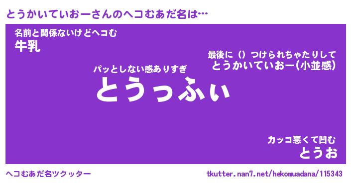 | ヒーロー風カッコイイあだ名 | 『スーパートウカイテイオー』 |