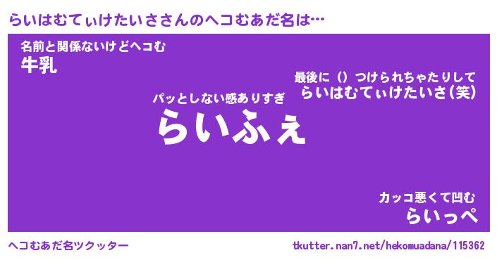| ヒーロー風カッコイイあだ名 | 『スーパーライハムティケタイサ』 |
