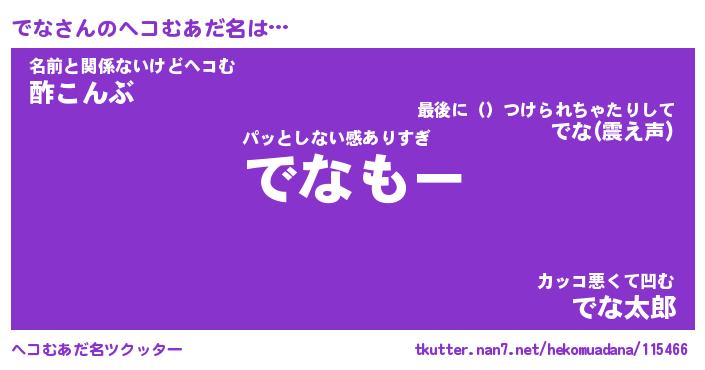 | 男性向けラノベタイトル風あだ名 | 『でなの憂鬱』『ノーゲーム・ノーデナ』 |