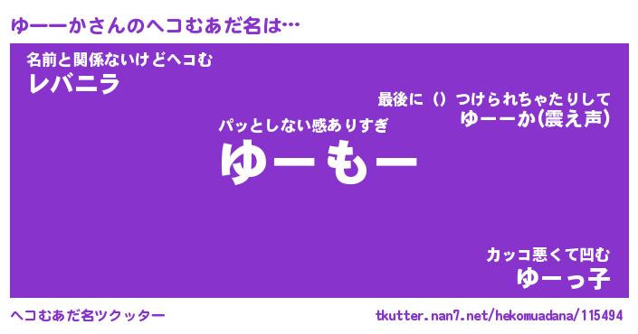 | 意味不明あだ名 | 『ペロリンゆーーか』『永久保存ゆーーか』 |