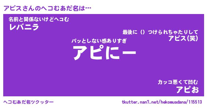 | ポケモン風あだ名 | 『アピチュウ』『アピスダネ』 |