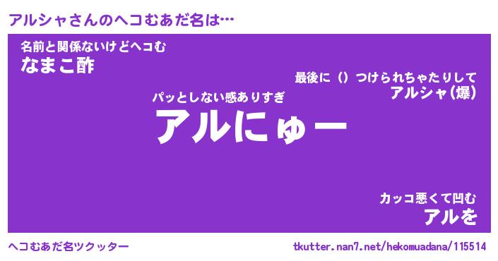 | 意味不明あだ名 | 『ペロリンアルシャ』『永久保存アルシャ』 |