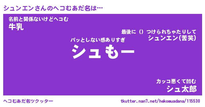 | 男性向けラノベタイトル風あだ名 | 『シュンエンの憂鬱』 |