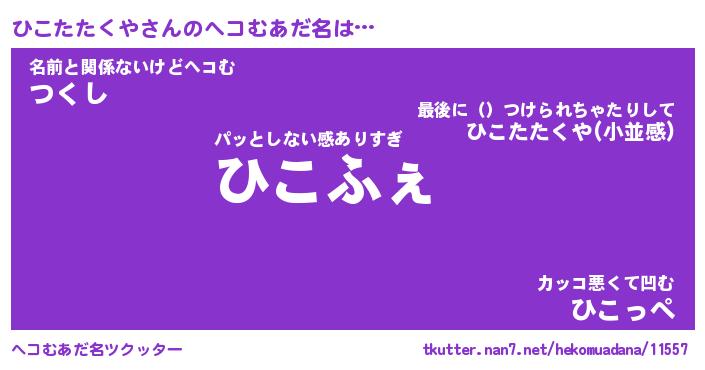 | 男性向けラノベタイトル風あだ名 | 『ひこたたくやの憂鬱』 |