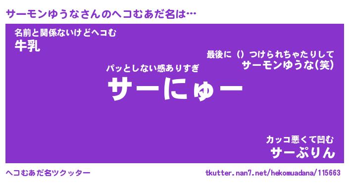 | ヒーロー風カッコイイあだ名 | 『スーパーサーモンユウナ』 |