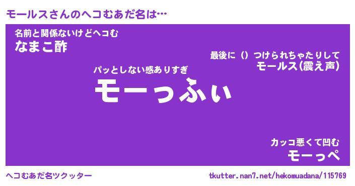 | 意味不明あだ名 | 『ペロリンモールス』『永久保存モールス』 |