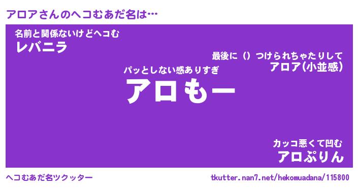 | 意味不明あだ名 | 『ペロリンアロア』『アロアフォーエバー』 |