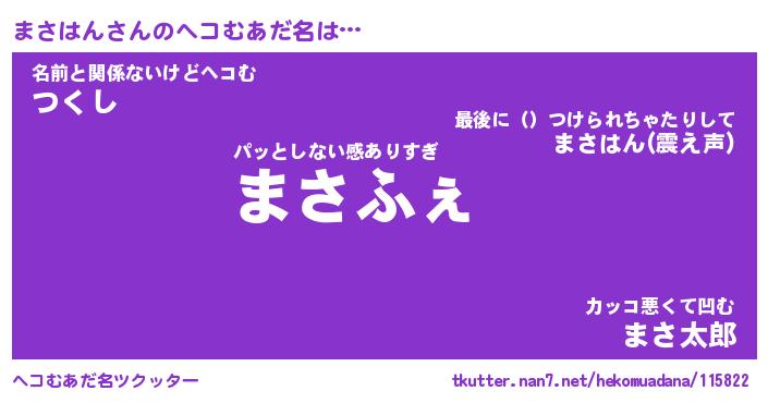 | ヒーロー風カッコイイあだ名 | 『スーパーマサハン』『銀牙騎士マサ』 |