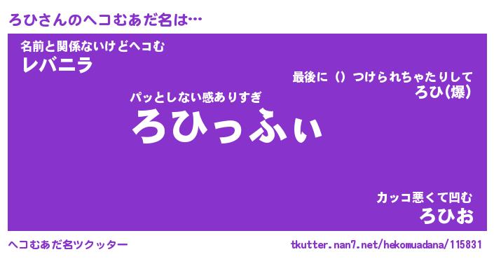 | ポケモン風あだ名 | 『ロヒチュウ』『ロヒダネ』『ヒロヒ』 |