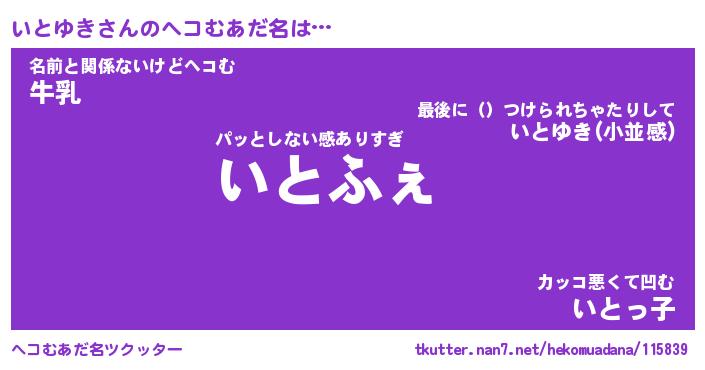 | 意味不明あだ名 | 『ペロリンいとゆき』『永久保存いとゆき』 |