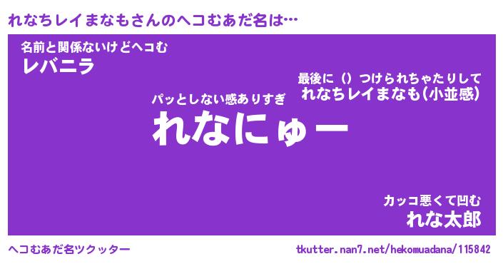 | 2回繰り返すあだ名 | 『れなれな』『れれなな』『おやおや』 |