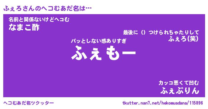 | 2回繰り返すあだ名 | 『ふぇふぇ』『ふふぇぇ』『ぬるぬる』 |